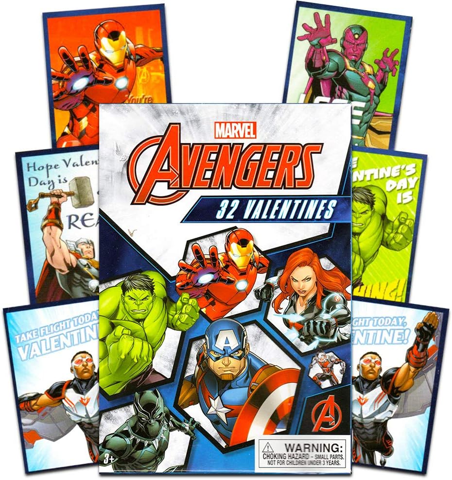 Amazon Com Marvel Avengers Box Of 32 Valentines Day Cards 8 Heroic Designs Office Products